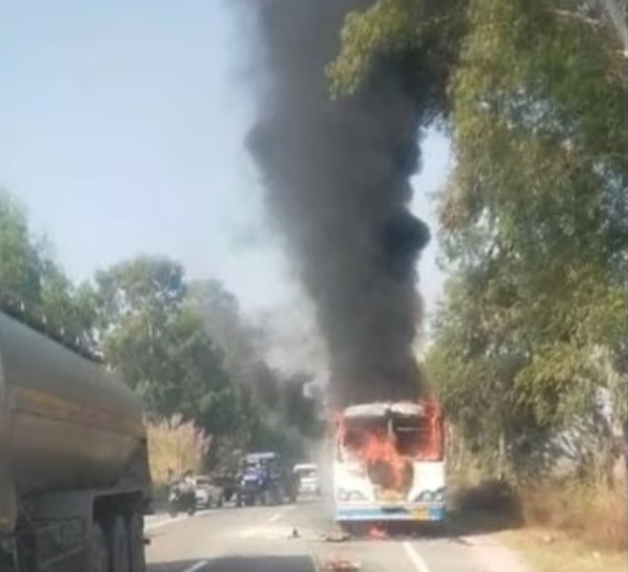बस चालक उमेश और परिचालक धर्मबीर ने बताया कि हादसे के दौरान बस में 45-50 सवारियां बैठी थी. अचानक आग लगने पर तुरंत बस से सभी सवारियों को सुरक्षित बाहर निकाला गया. फायर ब्रिगेड को सूचना देने के काफी देर बाद पहुंची और आग पर काबू पाया गया.