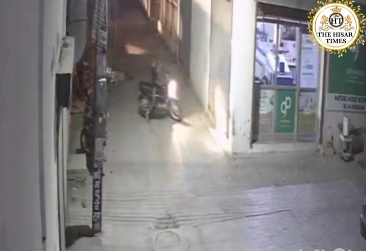 हिसार के आजाद नगर स्थित ब्लेसिंग बैंक्विट हॉल में अजीबो गरीब घटना सामने आयी हिसार के ब्लेसिंग बैंक्विट हॉल के आगे से चोर अमन जो की शांति नगर का रहने वाला है का बाइक चुरा कर ले जाते हैं तथा 4 घंटे बाद बाइक को उसी जगह पर लाकर खड़ा कर देते हैं अमन ने बताया कि वह बैंक्विट हॉल में किसी काम के लिए आया था उसने अपनी बाइक बैंक्विट हॉल के गेट पर लगाई थी पर जब वह 15 मिनट बाद वापस लौटा तो उसे उसकी बाइक नहीं मिली बैंक्विट हॉल के सीसीटीवी कैमरा चेक करने के बाद पता लगा कि दो युवक जो की कंबल एवं टोपी ओढ़े हुए आते हैं तथा बाइक चुरा कर ले जाते हैं जिसकी सूचना वह आजाद नगर पुलिस थाने में देता है अमन के अनुसार रात्रि करीब 12:00 बजे चोर बाइक दोबारा उसी स्थान पर छोड़कर चले जाते हैं जहां से उन्होंने चुराई थी जब अमन बाइक को जाकर संभालता है तो देखता है कि उसकी दोनों नंबर प्लेट्स पर मिट्टी लगी हुई है जिसकी सूचना पुलिस को दोबारा दे दी जाती है पुलिस अपनी आगामी कार्रवाई कर रही है