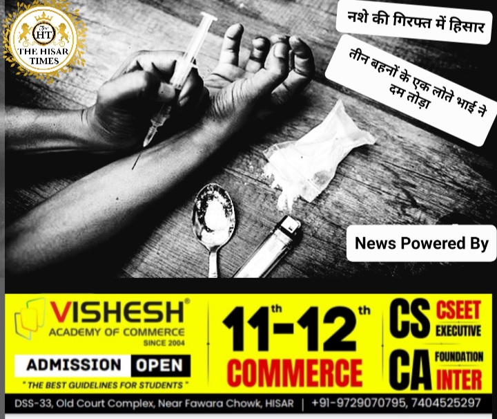 हिसार महानगर नशे की गिरफ्त में है.जिले में नशे का कारोबार तेजी से फैल रहा है। बीते 11 दिनों में नशे की वजह से चौथी मौत हुई, 24 वर्षीय मुकेश चार दिन से अस्पताल में चल रही जिंदगी और मौत की जंग हार गया.नशे के कारोबारी इन दोनों हिसार में तेजी से पेर पसार रहे हैं और युवा इस नशे की चपेट में बहुत जल्दी आ रहे हैं, इनमें लड़के एवं लड़कियां दोनों ही हैं,जिन्होंने किसी के कहने पर एक बार नशा लेना शुरू किया और फिर उसे छोड़ नहीं पाए, नशे के आदि व्यक्ति को कुछ होश नहीं रहता वह नशा लेने के लिए अपना घर बार तक बेचने को तैयार हो जाता है, नशे की लत में लोग किसी भी तरह का गुनाह करने से भी हिचकीचाते नही, अपने बच्चों की संगत एवं उनकी हरकतों पर नज़र रखे .