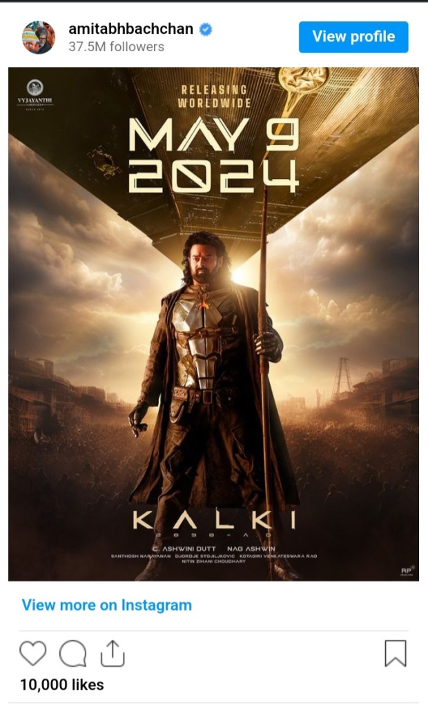 फैंस को अमिताभ बच्चन की आने वाली फिल्म का भी बेसब्री से इंतजार है। हर कोई बिग बी अपकमिंग फिल्म Kalki2898AD को लेकर बेकरार है। फैंस दिल थाम कर इस फिल्म का इंतजार कर रहे हैं। हालांकि अब फैंस को इस फिल्म के लिए ज्यादा इंतजार नहीं करना होगा क्योंकि फिल्म को 9 मई 2024 को सिनेमाघरों में रिलीज कर दिया जाएगा।
