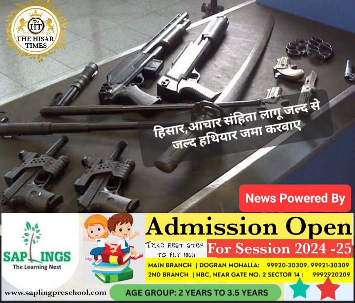 हिसार, लोकसभा चुनाव की घोषणा के साथ ही आचार संहिता लागू हो चुकी है.जिला उपायुक्त प्रदीप दहिया और एसपी मोहित हांडा ने थाना और चौकी प्रभारियों को सभी लाइसेंसी हथियार जमा करवाने के लिए निर्देश दिए हैं।तय सीमा में हथियार जमा न करवाने वालों पर कानूनी कार्रवाई की जाएगी।