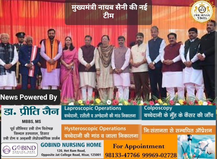 नायब सैनी मंत्रिमंडल में डॉ. कमल गुप्ता को छोड़कर बाकी सात पहली बार मंत्री बने हैं सभी की नजरें पूर्व गृहमंत्री अनिल विज पर टिकी थी, जो इस समारोह से दूर नजर आए। शपथ ग्रहण समारोह संपन्न हो गया है। इनमें एक को कैबिनेट मंत्री बनाया गया है, बाकी सात को स्वतंत्र प्रभार सौंपा गया है।