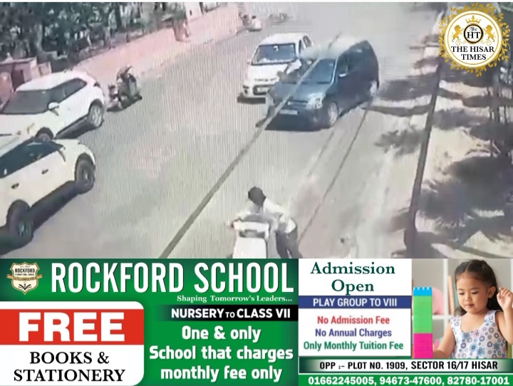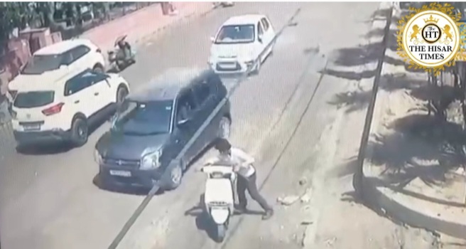 हिसार के सेक्टर 14 में स्कूटी को टक्कर मारकर कार सवार फरार हो गया,हिसार के सेक्टर 14 में हिट एंड रन का मामला सामने आया है जिसमे इनकम टैक्स ऑफिस के पास कार सवार स्कूटी पर सवार महिला और एक युवक को टक्कर मारता है और उसके बाद साइड से गाड़ी निकाल तेजी से भगा ले जाता है. घटना सीसीटीवी कैमरे में कैद हो गई है