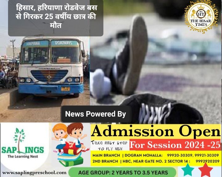 हिसार। हरियाणा रोडवेज की बस से गिरकर 25 वर्षीय आईटीआई के छात्र की दर्दनाक मौत हो गई. न्योली कलां के पास रोडवेज बस से गिरने के कारण बहुतकनीकी संस्थान के छात्र की मौत हो गई। न्योली कलां गांव के सुमित कुमार ने बताया कि वह और मृतक अमित शनिवार सुबह 9:50 पर हरियाणा रोडवेज की बस में सवार होकर हिसार के लिए चले थे. बस में भीड़ के चलते अमित बस की पिछली खिडक़ी में खड़ा था।