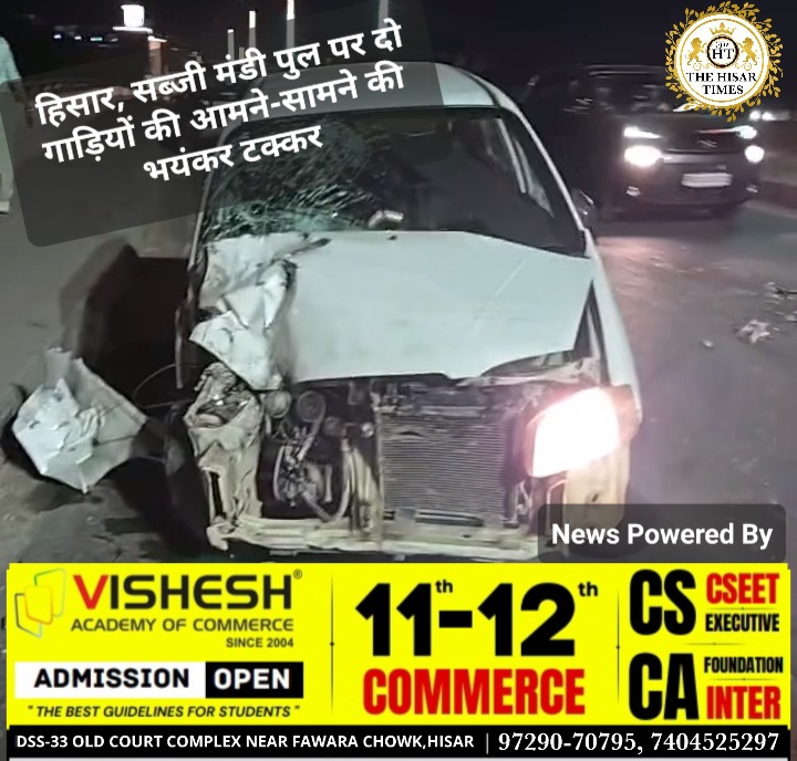 हिसार,सब्जी मंडी पुल पर दो गाड़ियों की आमने-सामने की भयंकर टक्कर!