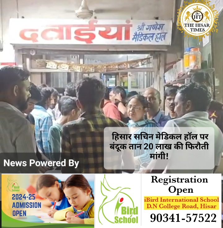 हिसार,सचिन मेडिकल स्टोर पर बंदूक तान 20 लाख रुपए के फिरौती मांगी.हिसार में दिनों दिन क्राइम का ग्राफ बढ़ता जा रहा है.मंगलवार शाम मिल गेट स्थित सचिन मेडिकल स्टोर पर बंदूक तान 20 लाख रुपए की फिरौती मांगी और हवा में फायर कर दहशत फैला भाग गए! इस घटना का सीसीटीवी वीडियो सामने आ गया है जिसमे बदमाश का चेहरा साफ तौर पर दिखाई दे रहा है.बदमाश काउंटर पर फिरौती की चिठ्ठी पकड़ा कर बंदूक में गोली डालता हुआ बोलता जा रहा है.और कुछ दूर जाकर हवा में फायर कर भाग जाता हैं