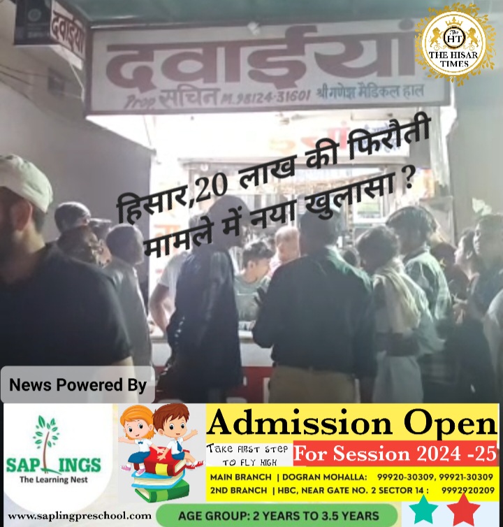 हिसार के मिल गेट एरिया में सचिन मेडिकल स्टोर से 20 लाख रुपए फिरौती मामले में नया पहलू सामने आया है सीसीटीवी फुटेज की गहन जांच के बाद यह पता चला है कि इस वारदात में 2 नहीं बल्कि चार से पांच लोग शामिल है. बदमाशों के हौसले इतने बुलंद है की फिरौती मांगने के अगले दिन उन्होंने सोशल मीडिया पर एक वीडियो भी अपलोड किया। इसमें कहा गया कि तुम्हारे पास तीन दिन है। वीडियो जारी करने के वाले आरोपी की पहचान विकास उर्फ चोटी के रूप में हुई है।