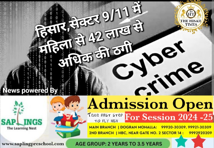 हिसार।आए दिन साइबर ठगी के नए-नए तरीके सामने आ रहे हैं इसी तरह की घटना में साइबर अपराधियों ने सेक्टर 9-11 में रहने वाली महिला के साथ टेलीग्राम पर टास्क पूरा करने के नाम पर 42.12 लाख रुपये की धोखाधड़ी की।
