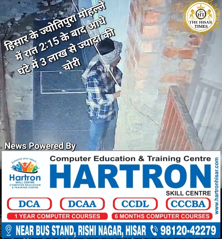 हिसार ज्योतिपुरा मोहल्ले में रात 2:15 बजे आधे घंटे में 3 लाख से ज्यादा की चोरी!