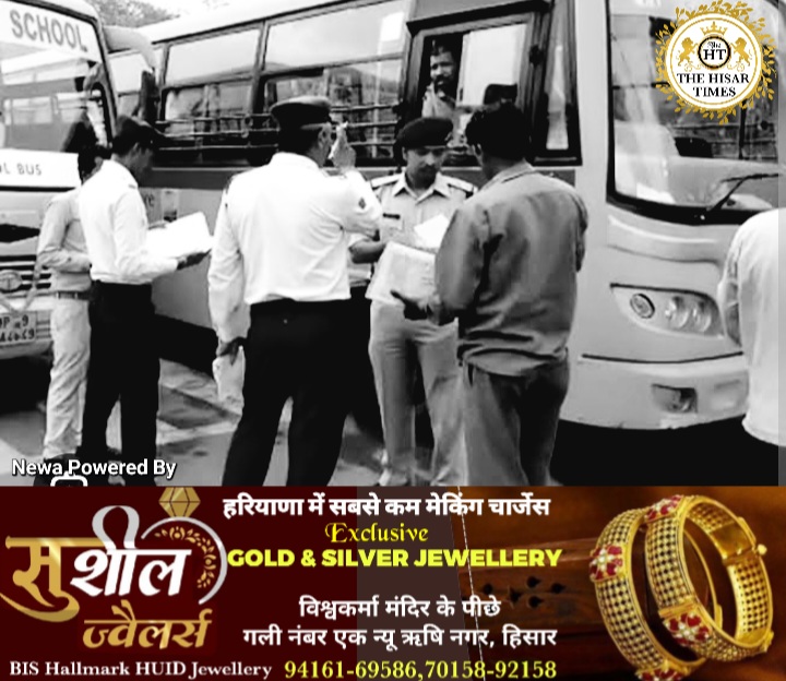 हिसार पुलिस ने आज स्कूल बसों की चैकिंग की। बस ड्राइवरों को ट्रैफिक नियमों संबंधी जानकारी दी और बस हेल्पर को बच्चों को सही तरीके से बिठाने और उतारने के बारे में जानकारी दी। चेकिंग के दौरान बसों में जो कमी पाई गई उस संबंधी ड्राइवरों को बताया गया। जिन बसों में कमियां थी, उन्हे इंपाउंड किया गया और चालान भी काटे गए।