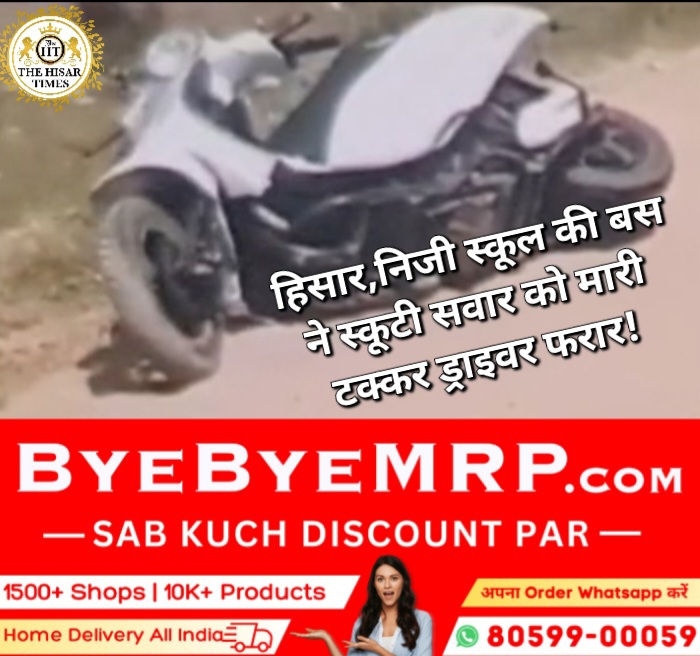 हिसार,निजी स्कूल की बस ने स्कूटी सवार को मारी टक्कर,ड्राइवर फरार!