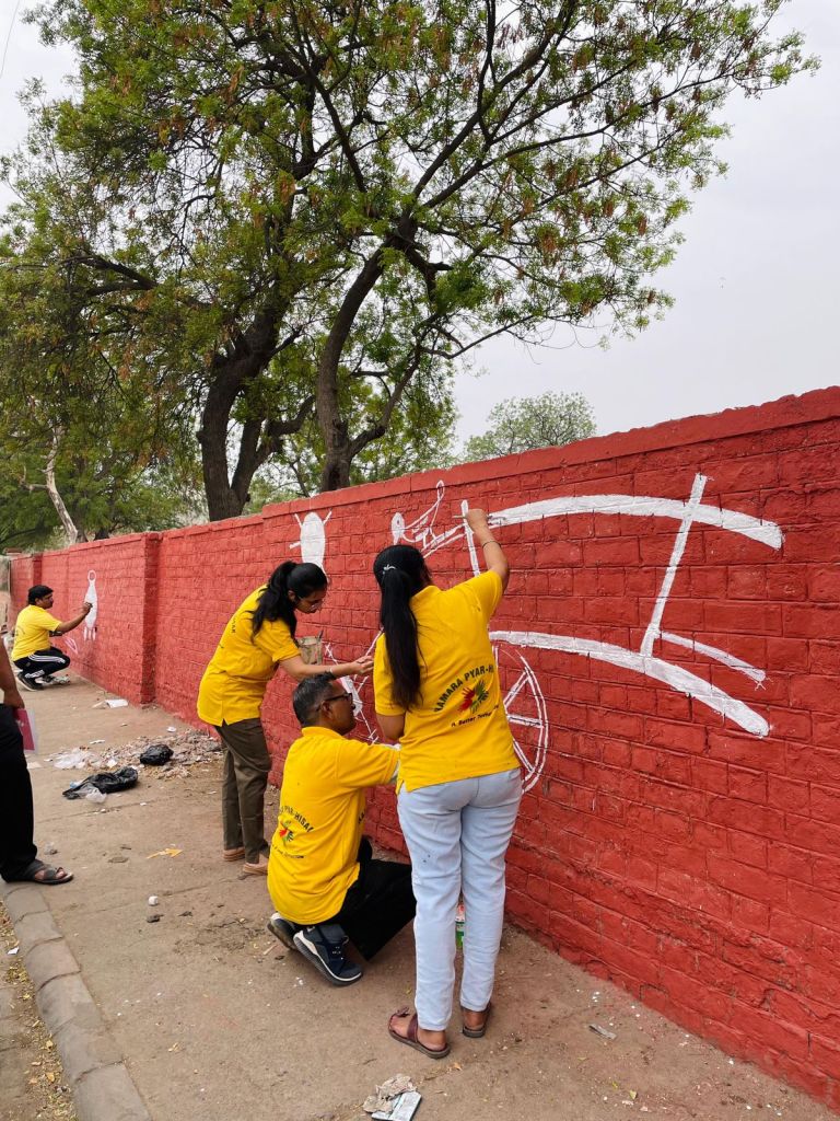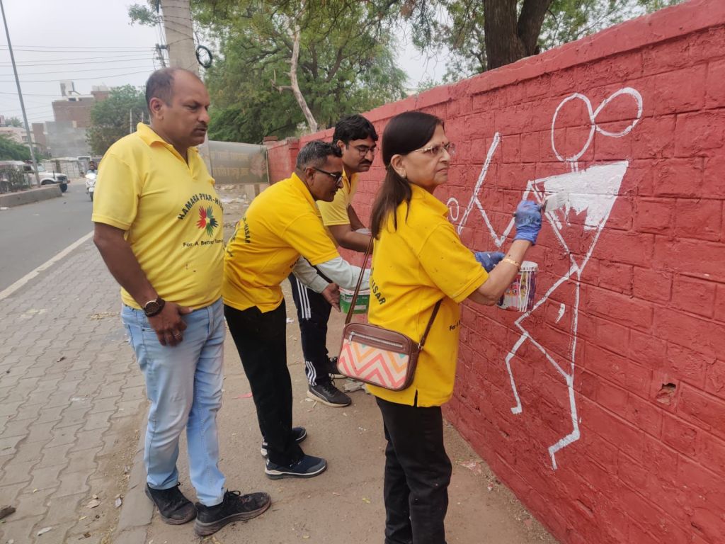 ‘हमारा प्यार हिसार’ की टीम ने आज सिटी थाने के सामने की दीवार पर वर्ली आर्ट से सुन्दर कलाकृतियाँ बनाईं। इससे पहले टीम ने बदरंग दीवार पर टेराकोटा पेंट कर उसे सुंदर रूप दिया। उल्लेखनीय है कि संस्था के सदस्यों ने पिछले कुछ सप्ताहों से यहाँ सौन्दर्यकरण अभियान चलाया हुआ है जिसके चलते टीम ने दीवार को वर्ली आर्ट से सुन्दर पेंटिंग कर आकर्षक बना दिया है।