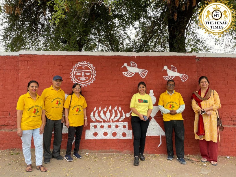 ‘हमारा प्यार हिसार’ की टीम ने आज सिटी थाने के सामने की दीवार पर वर्ली आर्ट से सुन्दर कलाकृतियाँ बनाईं। इससे पहले टीम ने बदरंग दीवार पर टेराकोटा पेंट कर उसे सुंदर रूप दिया। उल्लेखनीय है कि संस्था के सदस्यों ने पिछले कुछ सप्ताहों से यहाँ सौन्दर्यकरण अभियान चलाया हुआ है जिसके चलते टीम ने दीवार को वर्ली आर्ट से सुन्दर पेंटिंग कर आकर्षक बना दिया है।