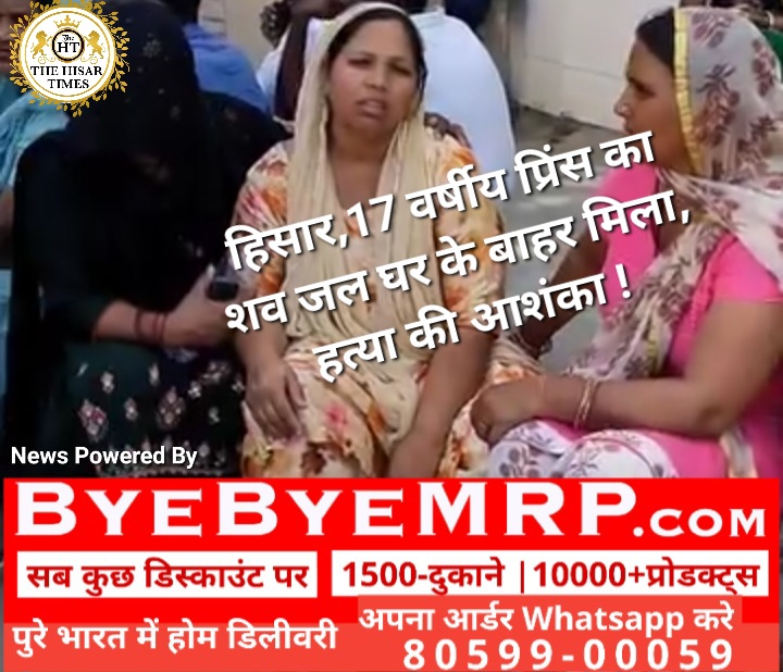 हिसार,मंगलवार को 17 वर्षीय किशोर प्रिंस का शव आजाद नगर से जलघर के बाहर मिला था.मृतक किशोर के परिजनों के अनुसार वह मंगलवार को अपने घर से बाइक पर सवार होकर अपने दोस्तों के साथ आजाद नगर के जल घर में नहाने के लिए गया था. जब वह काफी देर तक अपने घर लौट कर नहीं आया तो परिजनों ने उसकी तलाश की पर वह नहीं मिला.दोपहर बाद प्रिंस का शव आजाद नगर जल घर के बाहर पड़ा हुआ मिला.मृतक प्रिंस के भाई यश ने भाई की हत्या की आशंका जताई है.