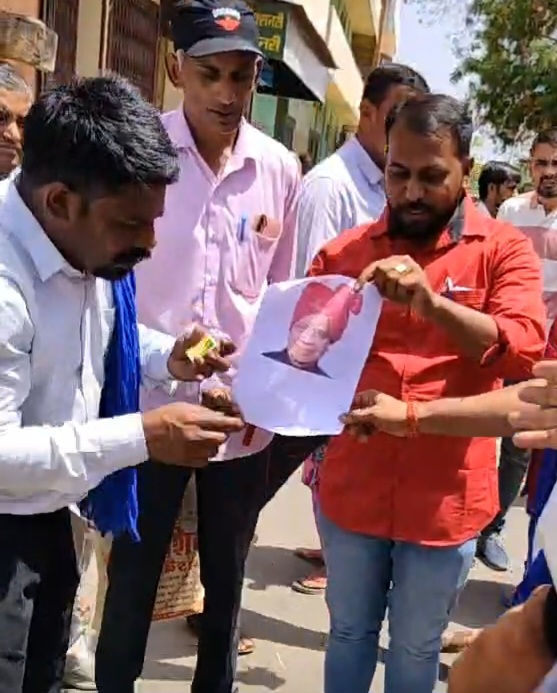 भीम आर्मी के सदस्यों ने विरोध सवरूप विधायक और स्वास्थ्य मंत्री कमल गुप्ता का फोटो जलाया !