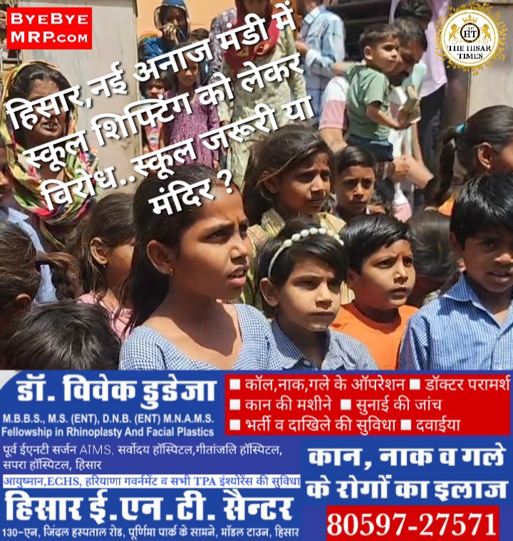 हिसार,नई अनाज मंडी में स्कूल शिफ्टिंग को लेकर अभिभावको का विरोध प्रदर्शन !