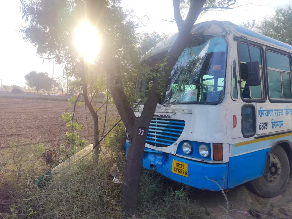 जानकारी के अनुसार हिसार डिपो की बस तोशाम से हिसार आ रही थी। रास्ते में तोशाम मार्ग पर बस के सामने एक कार चल रही थी। बताया जा रहा है कि सड़क पर गड्ढे के कारण बस के आगे चल रही कार ने अचानक कट मार दिया। ऐसे में कार को बचाने के चक्कर में बस के चालक का संतुलन बिगड़ गया और बस सड़क किनारे पेड़ से जा टकराई। जिस कारण बस में आगे बैठी चार-पांच सवारियों को चोटें आई। हादसे में बस क्षतिग्रस्त हो गई। घटना का पता चलने पर आजाद नगर थाना पुलिस मौके पर पहुंची।