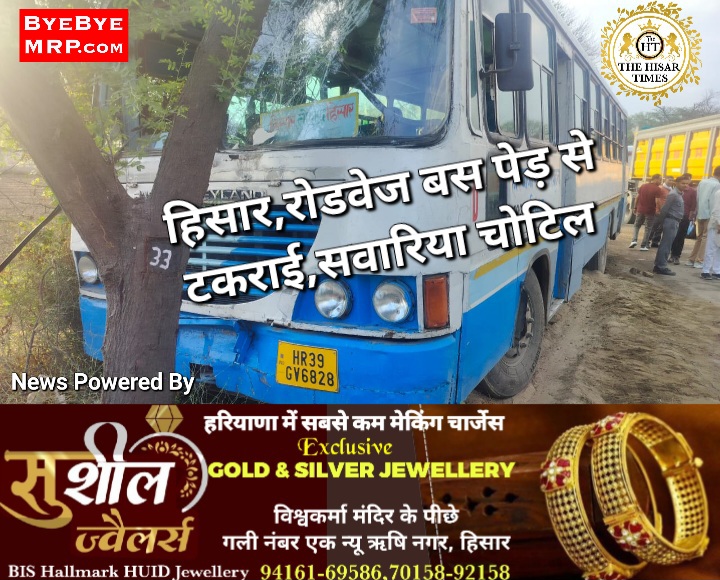 हिसार में तोशाम मार्ग पर सोमवार सुबह तोशाम से हिसार आ रही रोडवेज की बस अंसतुलित होकर पेड़ से जा टकराई। टक्कर लगने के कारण बस में सवार कुछ यात्रियों को मामूली चोटें आई और बस क्षतिग्रस्त हो गई। बस में सवार यात्रियों को दूसरी बस से अपने गंतव्य की तरफ भेजा गया।