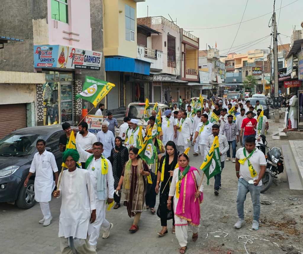 जेजेपी कार्यकर्ताओं ने उकलाना शहर में डोर टू डोर जाकर मतदाताओं से वोटों की अपील की