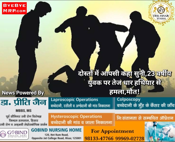 हिसार के तलवंडी राणा गांव में शनिवार देर रात तेजधार हथियार से वार कर युवक की हत्या कर दी। मृतक 23 साल का रोहित तलवंडी राणा गांव का रहने वाला था। जानकारी के अनुसार तलवंडी राणा निवासी रोहित मजदूरी का काम करता था। रात को वह जलघर में सोने के लिए गया था। रात करीब 10:30 बजे तक रोहित अपने दोस्तों के साथ बैठकर शराब पी रहा था। इसी दौरान रोहित के दोस्तों के साथ कहासुनी हो गई।