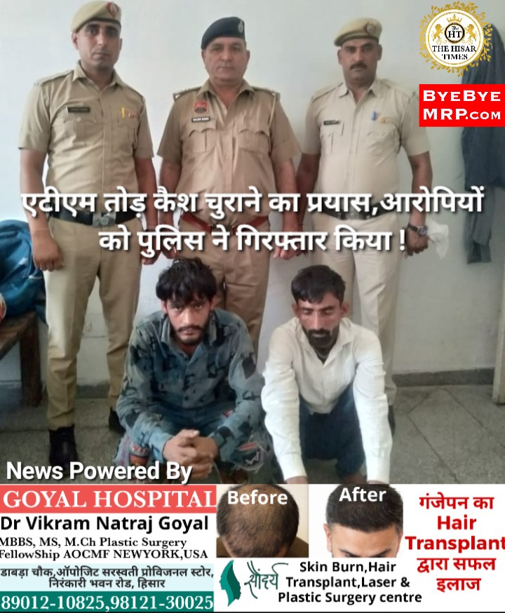 एटीएम को तोड़कर कैश चुराने का प्रयास करने के दो आरोपियों को नारनौंद पुलिस ने गिरफ्तार किया है। गिरफ्तार किए गए आरोपियों की पहचान पेटवाड़ निवासी अमित व बलजीत के रूप में हुई है। पुलिस ने दोनों आरोपियों को मंगलवार को अदालत में पेश किया, जहां से उन्हें जेल भेज दिया।