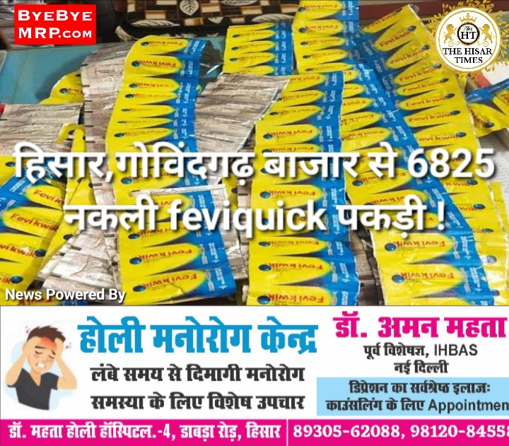 हिसार के नामी गोविंदगढ़ बाजार स्थित मैसर्ज ठकराल सेल्स कंपनी पर बुधवार देर शाम एचटीएम थाना पुलिस और पिडिलाइट इंडस्ट्रीज लिमिटेड के अधिकारियों ने छापा मारा। इस दौरान दुकान से 6825 नकली फेवीक्विक बरामद हुई। इस संबंध में पुलिस ने दुकान संचालक दलीप कुमार के खिलाफ केस दर्ज कर लिया है।एचटीएम थाना पुलिस को दी गई शिकायत में स्मिता लीगल कंपनी पिडिलाइट इंडस्ट्रीज लि. नोएडा के अधिकारी राहुत ने बताया कि कुछ समय से शिकायत मिल रही थी कि गोविंदगढ़ बाजार में मैसर्ज ठकराल सेल्स कंपनी नकली फेवीक्विक बना रही है। इसके बाद एचटीएम थाना पुलिस को अवगत कराया। बुधवार शाम टीम के साथ दुकान पर पहुंचे। जांच के दौरान दुकान से 6825 नकली फेवीक्विक बरामद हुई। पुलिस मामले की जांच कर रही है।