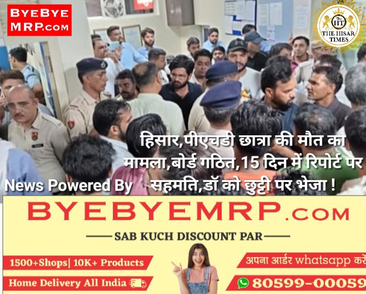 हिसार,पीएचडी छात्रा की मौत का मामला,बोर्ड गठित,15 दिन में रिपोर्ट पर सहमति,डॉ को छुट्टी पर भेजा !