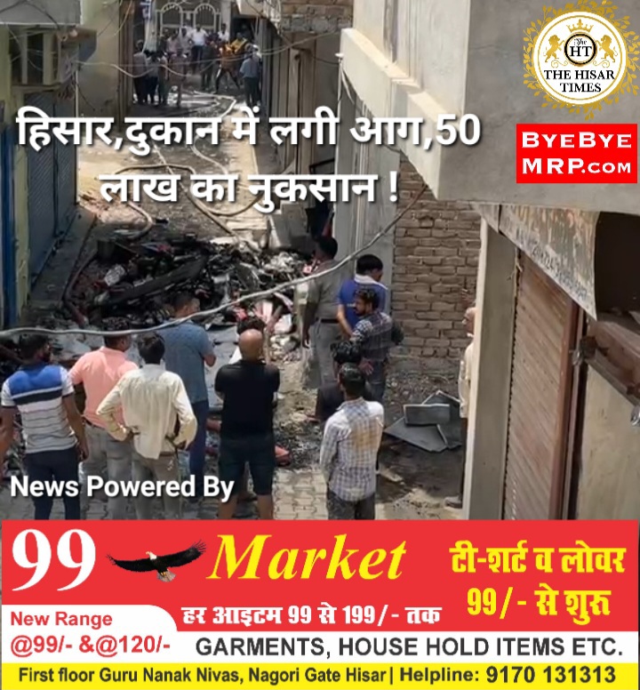 हिसार,तायल गार्डन स्थित दुकान में लगी आग,50 लाख का नुकसान !
