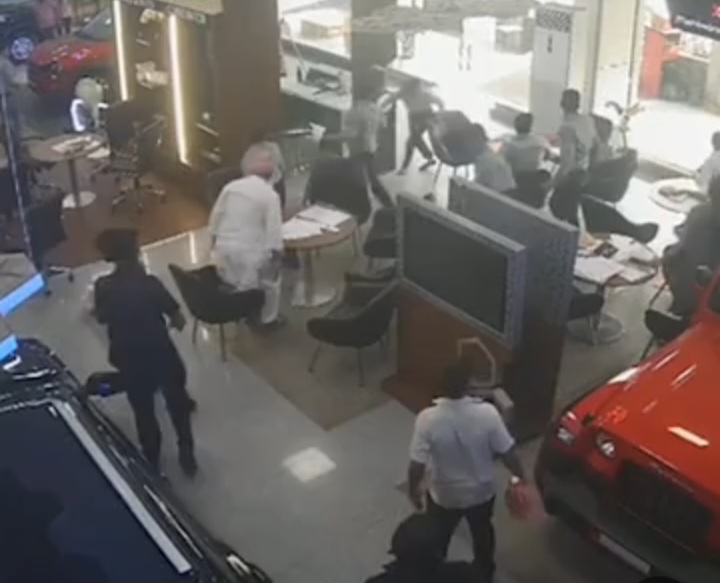 ▶बदमाश शोरूम के अंदर गए और काउंटर पर पर्ची फेंकी।