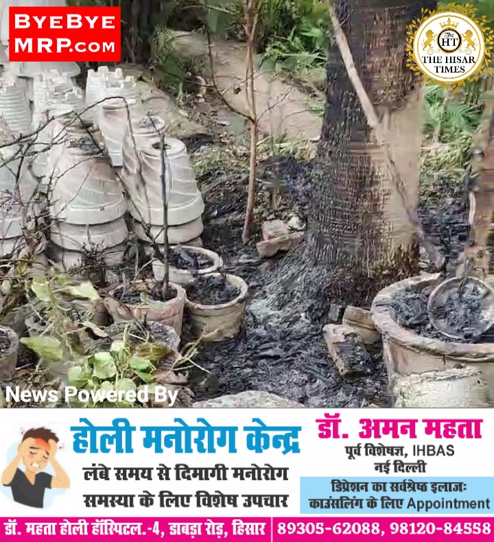 हिसार के मटका चौक के पास बनी एक नर्सरी में आज सुबह जोरदार धमाके के साथ आसमानी बिजली गिरी। बिजली के गिरने से वहां लगे एक पेड़ में आग लग गई और वह जलने लगा। मौके पर मौजूद नर्सरी के कर्मचारियों ने आज को बुझाया। बिजली के गिरने से नर्सरी के काफी पौधों को नुकसान पहुंचा है। आज सुबह करीब 10:00 बजे अचानक जोर से धमाका हुआ। जोर का धमाका सुनकर लोग भी हैरान हो गए। लोगों ने जब मालूम किया तो पता चला कि मटका चौक के पास बनी नर्सरी में बिजली गिरने से यह धमाका हुआ है। वही नर्सरी में बिजली गिरने से वहां लगे एक दो पेड़ों में आग लग गई। आग को देखकर वहां मौजूद कर्मचारियों ने पानी डालकर आग को बुझाया।