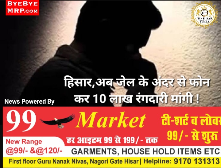हिसार शहर में रंगदारी मांगने के मामले लगातार सामने आ रहे हैं अब एक शराब ठेकेदार से जेल के अंदर से फोन करके 10 लाख रुपये की रंगदारी मांगने का मामला सामने आया है और ना देने पर ठेका न चलने देने की धमकी दी गई है। एक सप्ताह में रंगदारी मांगने का यह चौथा मामला है। पीड़ित का आरोप है कि उसने सदर थाने में 24 जून को शिकायत दी थी, लेकिन कोई कार्रवाई नहीं की गई। शनिवार को ठेकेदार ने सांसद जयप्रकाश से मुलाकात कर पीड़ा बताई।