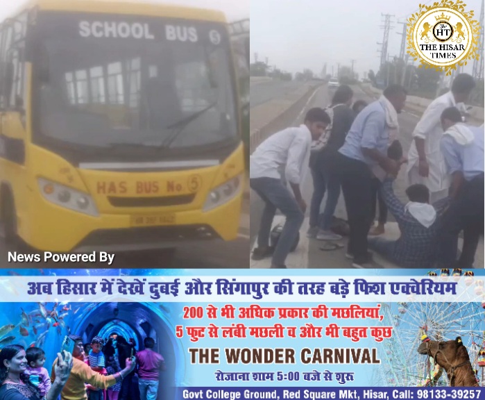 हिसार,तोशाम रोड पर शनिवार को दोपहर लगभग 1:00 बजे होली एंजेल स्कूल की बस ने बाइक सवार भाई और बहन को टक्कर मार दी. टक्कर लगने के बाद बाइक सवार भाई बहन गिरकर बुरी तरह से घायल हो गए प्राप्त जानकारी के अनुसार दोनों बी ए का पेपर देने के लिए तोशाम रोड स्थित शांति निकेतन कॉलेज में जा रहे थे. दोनों को राहगीरों व स्कूल स्टाफ ने उठाकर उपचार के लिए जिंदल अस्पताल में दाखिल करवाया.