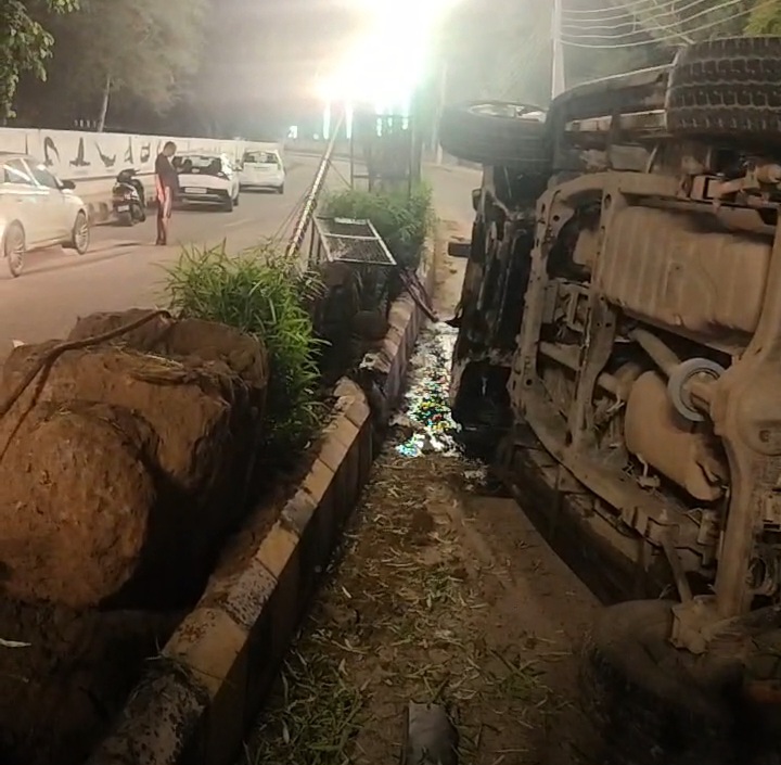 हिसार,रविवार देर रात ज्ञान केंद्र से लक्ष्मीबाई चौक की तरफ जाते हुए एक तेज रफ्तार सफेद रंग की टाटा सफारी गाड़ी अज्ञात कारणो के चलते अनियंत्रित होकर डिवाइडर से टकराकर दूसरी तरफ जा पलटी.इस दौरान गाड़ी की टक्कर से स्ट्रीट लाइट का पोल भी टूट कर गिर गया बताया जाता है की गाड़ी चालक भी मामूली घायल हुआ है. मौके पर मौजूद लोगों के अनुसार गाड़ी चालक ने नशा या शराब पी हुई थी जिस वजह से यह हादसा हुआ हादसे के वक्त गाड़ी बहुत ज्यादा स्पीड पर थी पुलिस मामले की जांच कर रही है