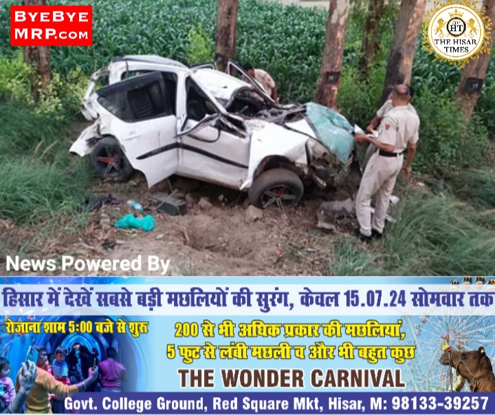 हिसार,गगन खेड़ी गांव के पास रिट्ज कार अनियंत्रित होकर पेड़ से टकरा गई. दुर्घटना में तीन दोस्तों की मौत हो गई। तीनों को गाड़ी की छत तोड़ कर बाहर निकलना पड़ा.मौके पर मौजूद लोगों के अनुसार दुर्घटना के वक्त गाड़ी काफी स्पीड में थी.तीनो को रविवार को एक दोस्त की बहन के भात व विवाह में शामिल होना था। इसके लिए कपड़े खरीदने के लिए हांसी आए थे। गांव लौटते समय रिट्ज कार अनियंत्रित होने से पेड़ से टकरा गई और हादसा हो गया।