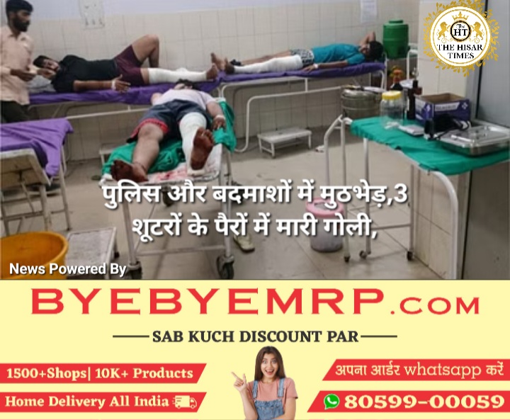 हांसी। मंगलवार देर रात को पुलिस और बदमाशों में मुठभेड़ हुई। उमरा रोड पर दोनों तरफ से हुई फायरिंग में 3 बदमाशों को पैर में गोलियां लगीं। तीनों को हांसी के सिविल अस्पताल में भर्ती कराया गया। प्राथमिक उपचार के बाद उन्हें अग्रोहा मेडिकल कॉलेज रेफर कर दिया। पुलिस सूत्रों के अनुसार, तीनों बदमाश जजपा नेता रविंद्र सैनी की हत्या में शामिल थे। बदमाशों की पहचान जींद के रहने वाले सचिन उर्फ मगतू, रोहतक के खरक जाटान निवासी योगेश उर्फ सुक्खा और भिवानी के पिजोखरा के रहने वाले विकास उर्फ काशी के रूप में हुई है। पुलिस के अधिकारी अस्पताल में पहुंचे। फिलहाल मामले को लेकर पुलिस अधिकारी मीडिया से दूरी बनाए हुए हैं।