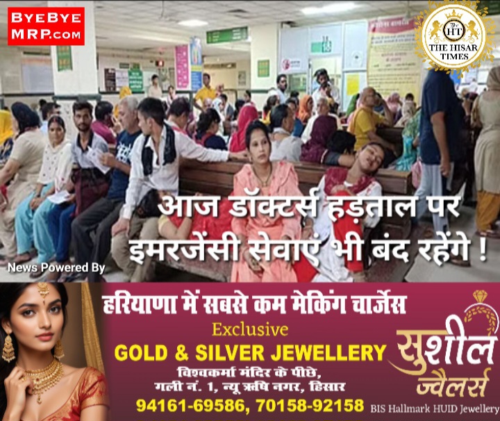 हरियाणा सिविल मेडिकल सर्विसिस एसोसिएशन वीरवार को हड़ताल कर विरोध जताएगी। एसोसिएशन से जुड़े सदस्यों का कहना है कि हड़ताल के दौरान ओपीडी बंद रखेंगे। इसके अलावा आपातकालीन सेवाएं और पोस्टमार्टम भी नहीं करेंगे। इस दौरान मरीजों को परेशानी झेलनी पड़ सकती है। वहीं अस्पताल प्रशासन की तरफ से मेडिकल कॉलेज अग्रोहा से चिकित्सकों की व्यवस्था की गई है, ताकि मरीजों को किसी प्रकार की कोई परेशानी न उठानी पड़े। अस्पताल परिसर में रोजाना करीब 1500 मरीज दवा लेने आते हैं। दरअसल डॉक्टर बिहार और केंद्र सरकार की तरह हरियाणा में भी ACP और वेतन, विशेषज्ञ कैडर के गठन, SMO की सीधी भर्ती और PG के लिए बांड राशि 1 करोड़ से घटाकर 50 लाख रुपए करने की मांग कर रहे हैं।
