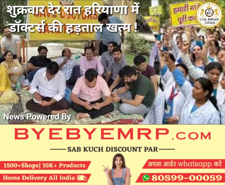 हरियाणा मैं डॉक्टरों की पिछले 2 दिन से जारी हड़ताल शुक्रवार रात 11:30 को खत्म हो गई सिविल मेडिकल सर्विसेज एसोसिएशन (एजसीएमएस) और सरकार के बीच वार्ता का सकारात्मक परिणाम निकला है एजसीएमएस की ओर से हड़ताल ख़त्म करने का ऐलान किया गया है. हरियाणा में लंबे समय से डॉक्टर सरकार से मांगों के लिए संघर्ष कर रहे हैं. बीते दो तीन माह से सरकार और डॉक्टरों में खींचतान चल रही है. पहले भी डॉक्टर्स बीच बीच में दो घंटे की हड़ताल करते आए हैं. लेकिन बुधवार को मांगें पूरी ना होने पर प्रदेश के सरकारी अस्पतालों में सभी तरह की सेवाएं डॉक्टरों ने बंद कर दी. दो दिन से चली आ रही हड़ताल से मरीजों का खासी परेशानी हुई. ऐसे में अब डॉक्टरों ने हड़ताल खत्म करने का ऐलान किया है. फिलहाल, मांगों पर सहमति बनी है. लेकिन आधिकारिक तौर पर कोई नोटिफिकेशन जारी नहीं की गई है.