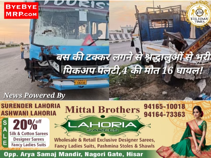 तेजरफ्तार बस ने श्रद्धालुओं से भरी पिकअप को मारी टक्कर,4 की मौत 16 घायल!