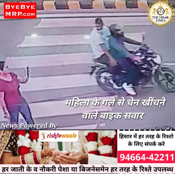 हिसार,सी एम के आने से पहले सेक्टर 9-11 में महिला के गले से सोने की चेन खींच बाइक सवार फरार !