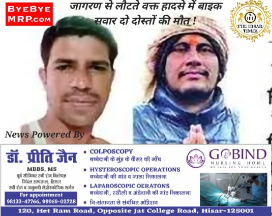 हिसार,जागरण से लौटते वक्त हादसे में बाइक सवार दो दोस्तों की मौत !