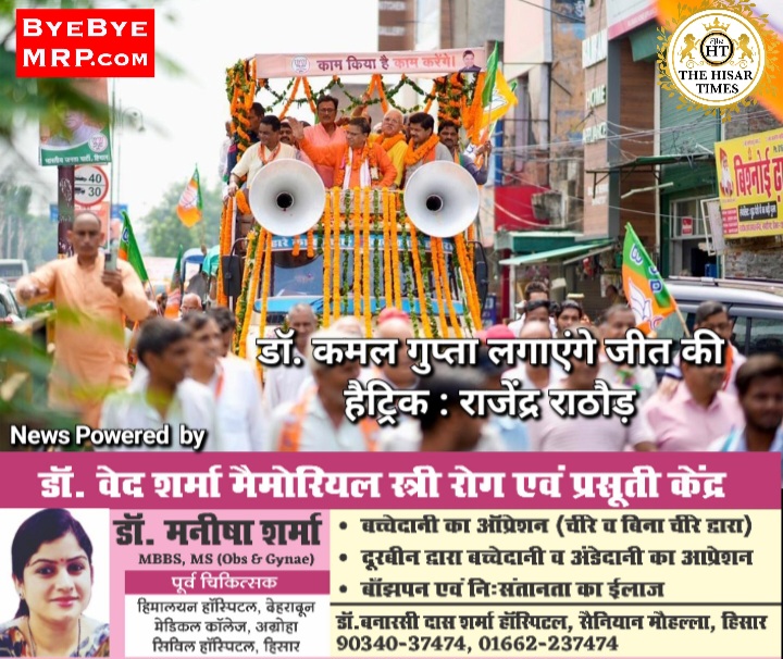 नामांकन भरने से पूर्व सुशीला भवन स्थित चुनाव कार्यालय हवन यज्ञ करके उद्घाटन किया गया। हवन यज्ञ में मुख्य यजमान डॉ. कमल गुप्ता व उनकी धर्मपत्नी डॉ. प्रतिमा गुप्ता रही। इस दौरान एक सभा का भी आयोजन किया गया। सभा का संचालन रामचंद्र गुप्ता ने किया। सभा को संबोधित करते हुए डॉ. कमल गुप्ता ने कहा कि लोकसभा चुनाव में पार्टी ने जिस प्रकार हिसार विधानसभा में 37 हजार से अधिक वोटों से लीड हासिल की थी, विधानसभा चुनाव में उससे भी अधिक मतों से जीत हासिल करेंगे। उन्होंने कहा कि पिछले 10 सालों में शहर में अनेकों विकास कार्य किए गए हैं, जो अपने आप में एक रिकॉर्ड है। उन्होंने कहा कि आने वाले वर्षों में शहर को एक पूर्ण विकसित शहर बनाया जाएगा। उन्होंने कहा कि हिसार की जनता विकास चाहती है और विकास केवल भाजपा ही करवा सकती है। इसलिए हिसार की जनता एक बार फिर कमल का फूल खिलाने का काम करेगी। मेरे घर के दरवाजे आपके लिए हमेशा खुले रहेंगे।