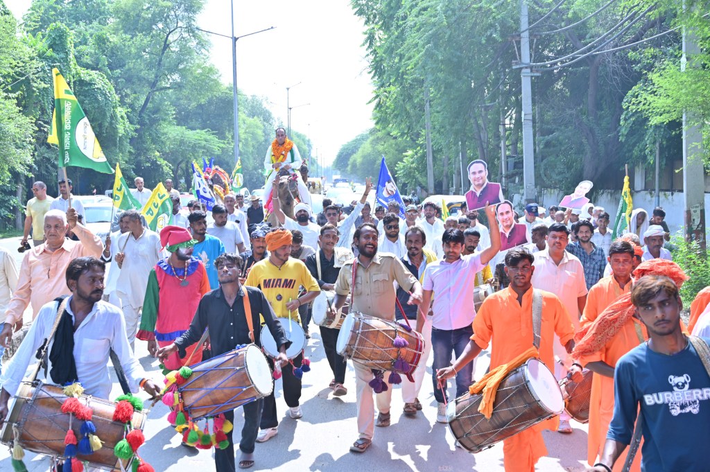 –भारी जुलूस के साथ नलवा जजपा प्रत्याशी ने किया नामाकंन