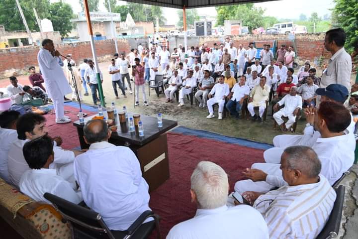 नलवा में आयोजित जनसभा में उपस्थित कुलदीप बिश्नोई व रणधीर पनिहार।