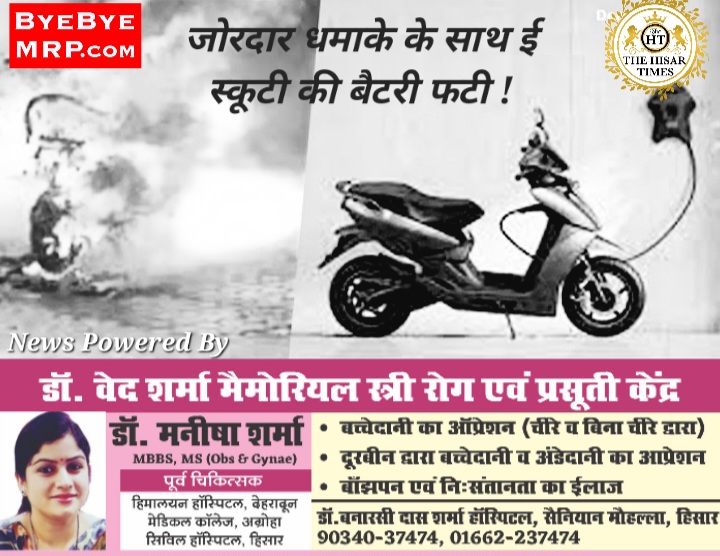 हिसार,सिटी थाना रोड पर जोरदार धमाके के साथ ई स्कूटी की बैटरी फटी !