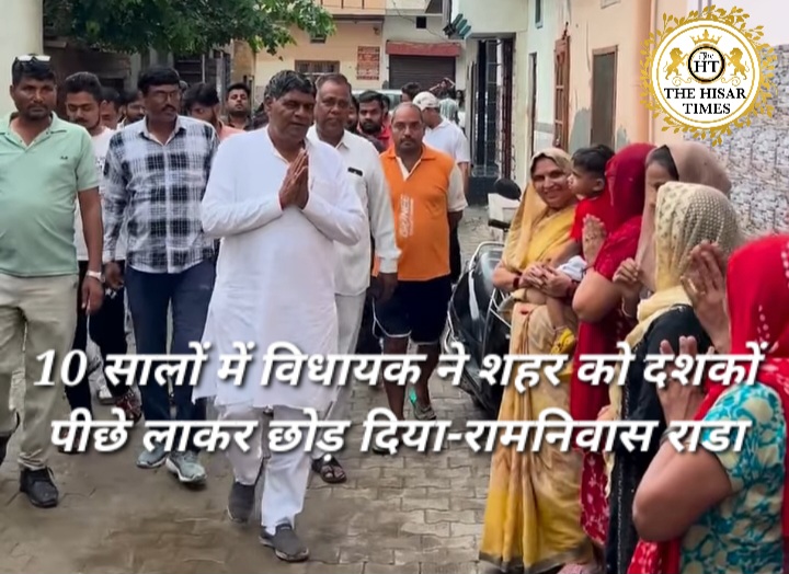 10 साल से मूलभूत सुविधाओं को तरस रही हिसार की जनता इस चुनाव में वर्तमान विधायक के साथ हिसाब चुकता करेगी और अपने वोट की ताकत से भाजपा का तख्ता पलटने का काम करेगी.यह बात हिसार विधानसभा से कांग्रेस के उम्मीदवार रामनिवास राडा ने विभिन्न क्षेत्रों में जनसभा के दौरान कही राडा ने कहा विधायक डॉक्टर कमल गुप्ता न तो हवाई जहाज उड़ा सके और ना ही हिसार को इंदौर बना सके बल्कि हिसार की हालत को उन्होंने बद से बदतर बना दिया जिसकी कहानी शहर के हालात बयां कर रहे हैं इन 10 सालों में विधायक ने शहर को दशकों पीछे लाकर छोड़ दिया है सड़कों पर बेसहारा पशु की भरमार, पूरे शहर में चरमाई हुई सीवरेज व्यवस्था जल के लिए तरसते लोग,बिजली के लंबे कट,प्रॉपर्टी टैक्स सहित अन्य कामों के लिए लोग चक्कर काट काट कर लोग थक चुके हैं