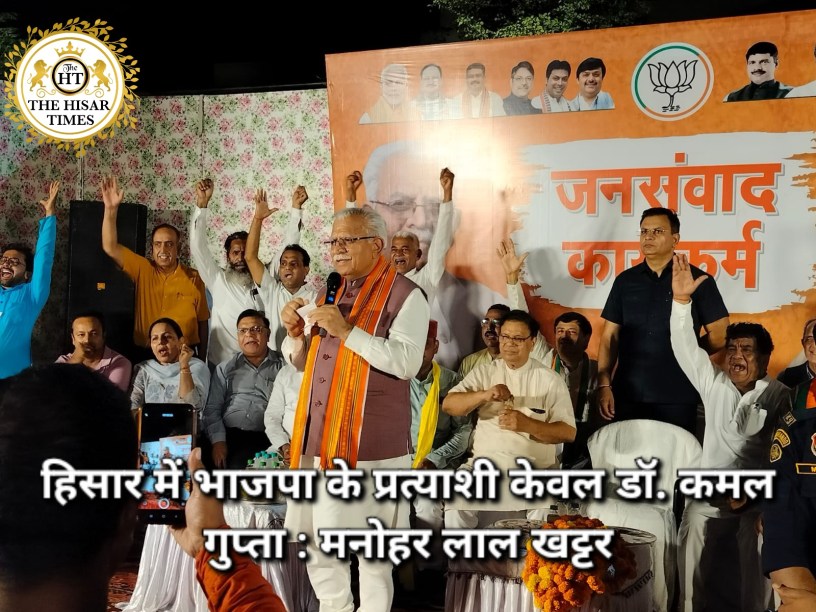 यह बात आज केंद्रीय मंत्री एवं पूर्व मुख्यमंत्री मनोहर लाल खट्टर ने शहर में पटेल नगर की पंजाबी धर्मशाला, बैंक कालोनी पार्क, राजगुरु मार्किट स्थित पंजाबी धर्मशाला व सेक्टर 14 में आयोजित विभिन्न कार्यक्रमों को संबोधित करते हुए कही। उन्होंने कहा कि हिसार के विधायक के रूप में पिछले 10 सालों में डॉ. कमल गुप्ता ने बेहतरीन कार्य किया है। उन्होंने सदैव हिसार के विकास को लेकर सोचा है। उनके प्रयासों से हिसार के विकास के लिए डवलेपमेंट अथोरिटी का गठन किया गया है। इसके अलावा हिसार में प्रदेश का पहला हवाई अड्डा बनकर तैयार हो गया है। इसलिए हिसार के लिए डॉ. कमल गुप्ता से बेहतर विधायक और कोई नहीं हो सकता है। हिसार की जनता शहर के विकास के लिए 5 अक्तूबर को कमल के फूल के आगे का बटन दबाकर डा. कमल गुप्ता को विधायक और भाजपा की सरकार बनाने का काम करे।