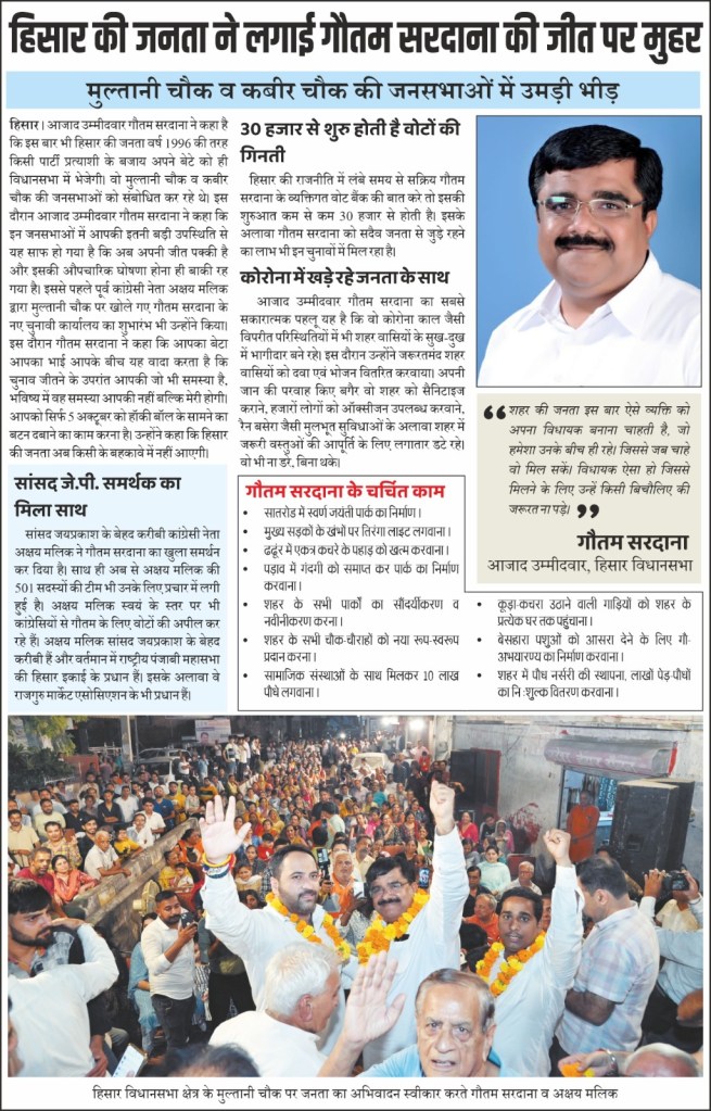 हिसार टाइम्स – लोकसभा- 2024 के चुनावों हो या विधानसभा-2019 की बात हो हरियाणा में पीएम मोदी और अमित शाह का भी जादू नहीं चला है। जहां-जहां मोदी और अमित शाह ने रैली की वही-वहीं बीजेपी हारी है। लोकसभा चुनाव 2024 के दौरान प्रधानमंत्री नरेंद्र मोदी ने हरियाणा में तीन रैलियां करके 5 लोकसभा सीटों पर असर डालने की कोशिश की। मई 18 को उन्होंने अंबाला में बीजेपी उम्मीदवार बंतो कटारिया के लिए प्रचार किया। बीजेपी ये सीट हार गई। बंतो कटारिया दिवंगत रतनलाल कटारिया की पत्नी हैं. रतनलाल कटारिया 2014 और 2019 में यहां से सांसद बने थे। उसी दिन पीएम मोदी ने सोनीपत लोकसभा क्षेत्र के गोहाना में रैली की थी। इस रैली के जरिए मोदी ने सोनीपत के साथ ही रोहतक सीट को साधने की कोशिश की थी. लेकिन यहां भी मोदी का मैजिक नहीं चला और बीजेपी को इन दोनों सीटों पर हार ही नसीब हुई। सोनीपत और रोहतक दोनों सीटों पर कांग्रेस को जीत मिली थी।