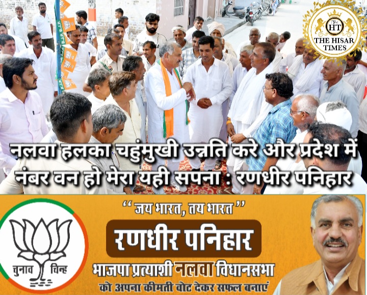 रणधीर पनिहार ने कांग्रेस पार्टी पर प्रहार करते हुए कहा कि कांग्रेस पार्टी इतने टुकड़ों में बंटी हुई है कि इसके सभी नेता एक-दूसरे की टांग खिंचाई में लगे हुए हैं। आधा दर्जन नेता तो सी.एम. कुर्सी के ही दावेदार हैं। जो पार्टी खुद ही अपने पैरों पर न खड़ी हो वह प्रदेश का भला क्या खाक करेगी। 10 साल पहले जब कांग्रेस का राज था उस समय प्रदेश के हालात ऐसे थे कि हरियाणा की गिनती बिहार जैसे राज्य से होने लगी थी। भाजपा सरकार ने आते ही प्रदेश में बदलाव किया और प्रदेश को विकास नई ऊंचाईयों पर पहुंचाने का काम किया। आज बीजेपी सरकार से हर वर्ग खुश है और नलवा हलके सहित पूरे प्रदेश की जनता 5 अक्टूबर को कमल के फूल के निशान का बटन दबाकर भारी बहुमत से फिर से प्रदेश में पार्टी की सरकार लाने का काम करेगी।