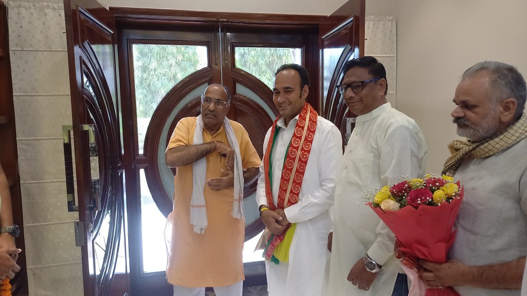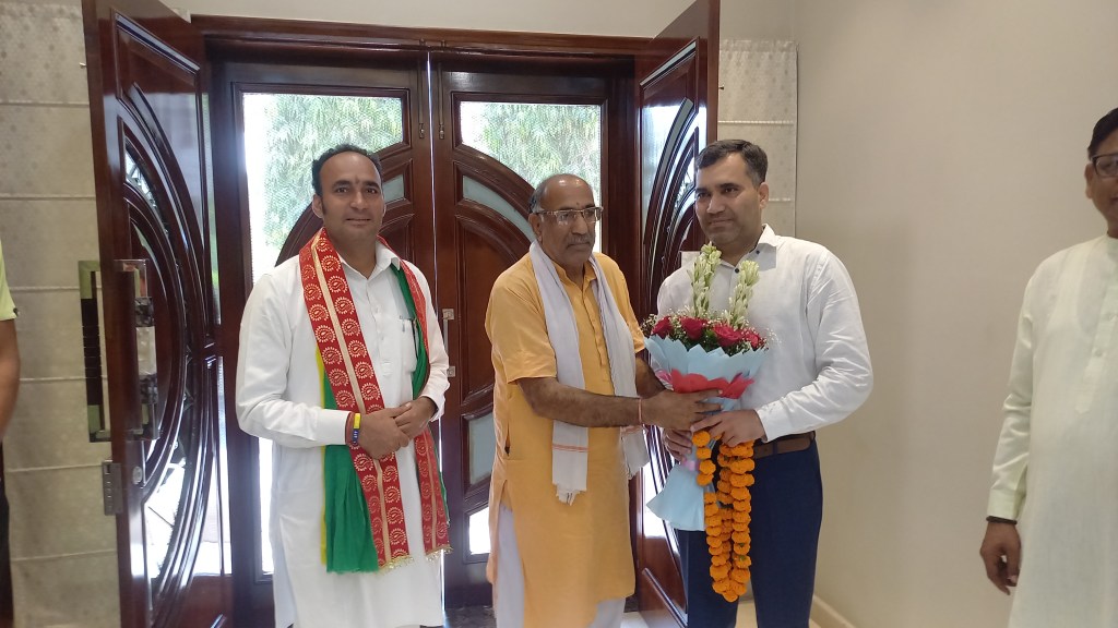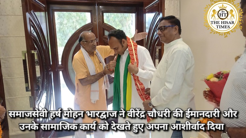 हिसार टाइम्स – जननायक जनता पार्टी के नलवा हल्का प्रत्याशी वीरेंद्र चौधरी को हल्के में उस समय और अधिक मजबूती मिली जब हरियाणा कर्मचारी चयन आयोग के पूर्व सदस्य एवं प्रमुख समाजसेवी हर्ष मोहन भारद्वाज ने वीरेंद्र चौधरी की ईमानदारी और उनके सामाजिक कार्य को देखते हुए अपना आशीर्वाद दिया डॉ भारद्वाज ने रविवार को एक निजी संस्थान में पत्रकार वार्ता को संबोधित करते हुए कहा वीरेंद्र चौधरी एक ऐसे युवा हैं जो राजनीतिक तौर के साथ-साथ सामाजिक तौर पर अपनी अलग पहचान बनाए हुए हैं उन्होंने कहा मैं वीरेंद्र चौधरी की साफ और बेदाग छवि से प्रभावित हुआ हूँ