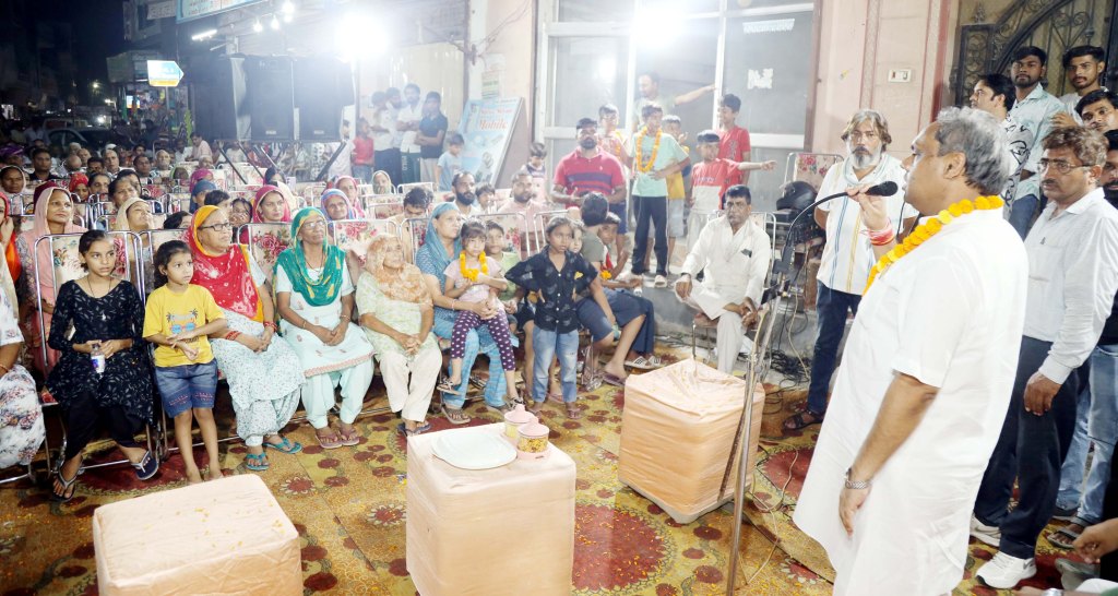 ✍️रूप नगर में आयोजित जनसभा के दौरान तरूण जैन को सम्मानित किया ।